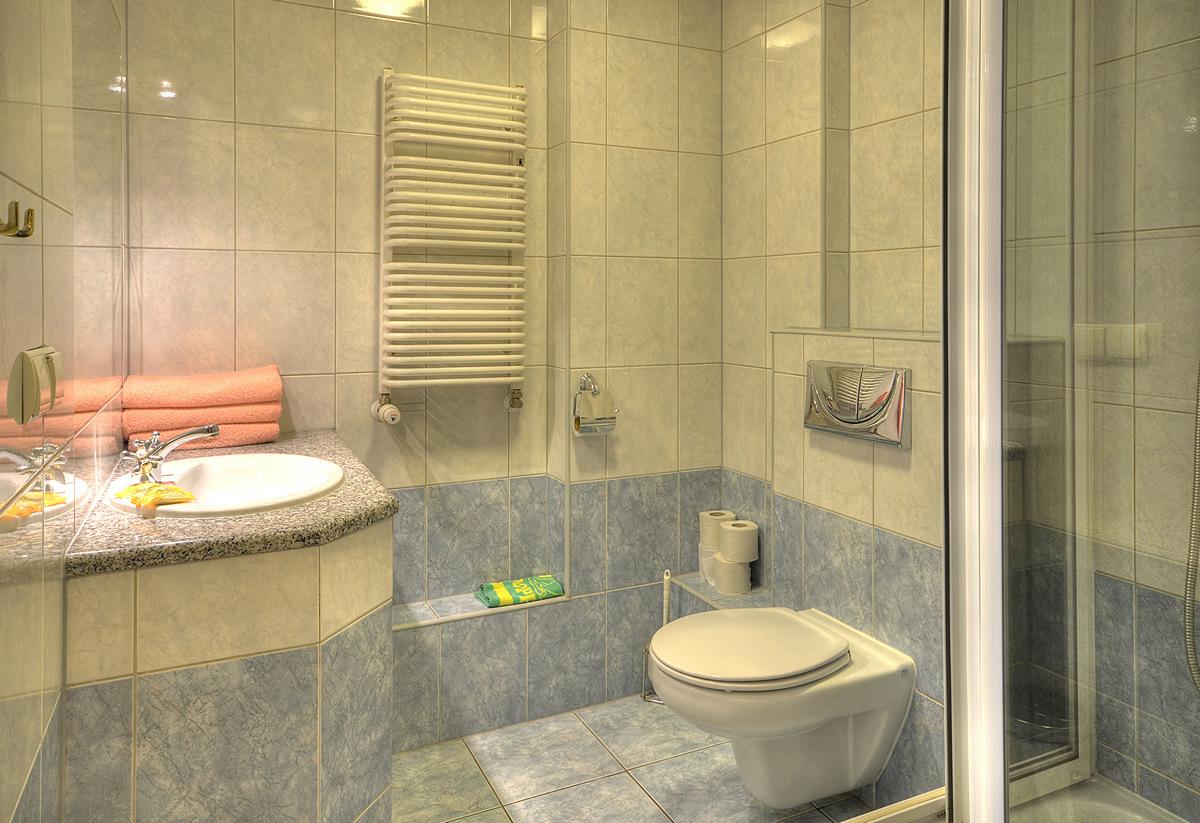 • łazienkę z kabiną prysznicową, ręcznikami oraz kosmetykę hotelową,